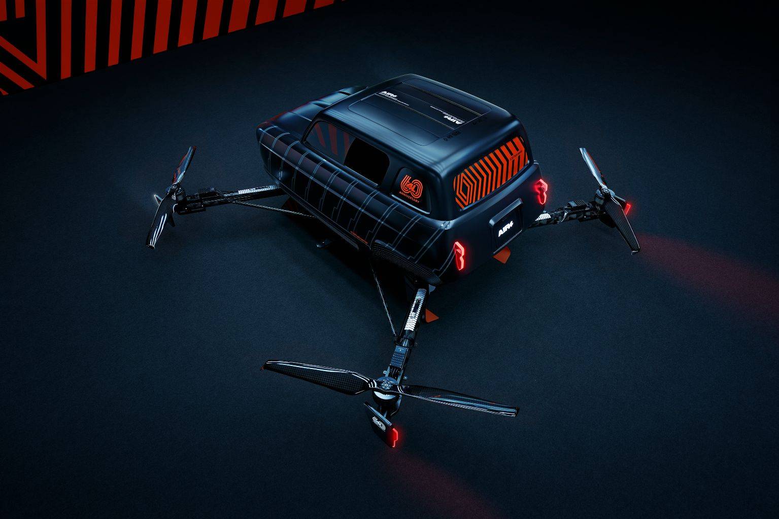 The idea of making a flying 4L came quite quickly since we have been working in the mobility industry for more than 20 years and we have always built crazy machines, set up explosive communications operations for all the biggest car manufacturers.