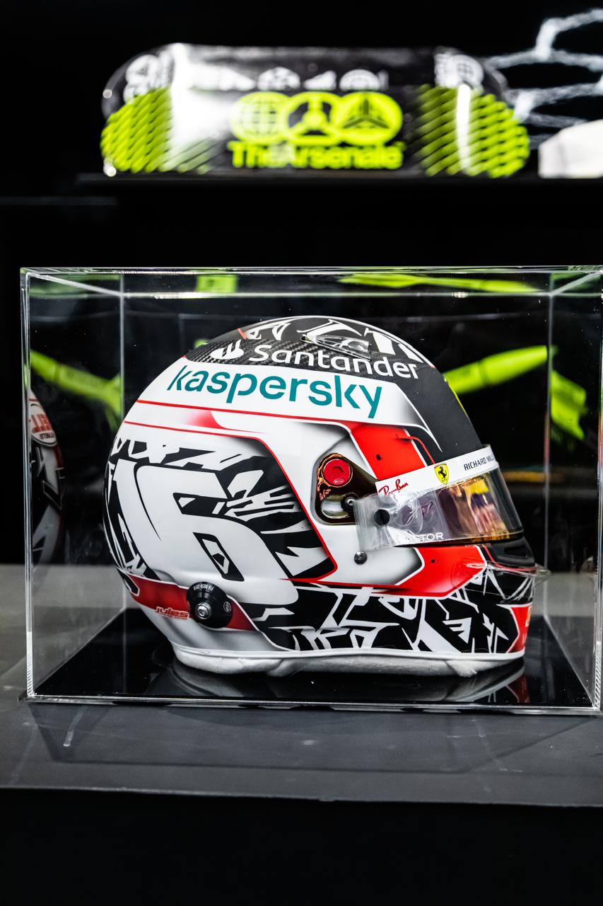 This original helmet worn by Charles Leclerc during the 2021 Formula 1 season captures a defining chapter in Ferrari’s modern resurgence. Representing precision, youth, and raw speed, the helmet reflects Leclerc’s aggressive yet calculated driving style. A contemporary F1 artifact, it stands as a bridge between Formula 1 heritage and its next generation of champions.