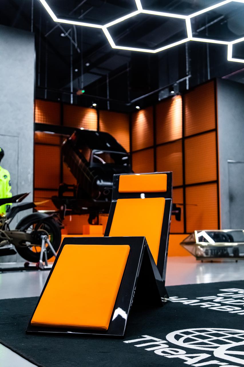 The shell is constructed from prepreg carbon fiber in all layers, with the curing process performed in an autoclave for a refined, high-integrity result. Comfort is delivered through cushions crafted in genuine Italian leather or Alcantara, with additional availability in fabric, offered across a wide color range. A standout detail: high-power magnets secure the cushions, allowing them to be removed easily—so the chair can switch from soft-lounge to pure-carbon display mode in seconds.