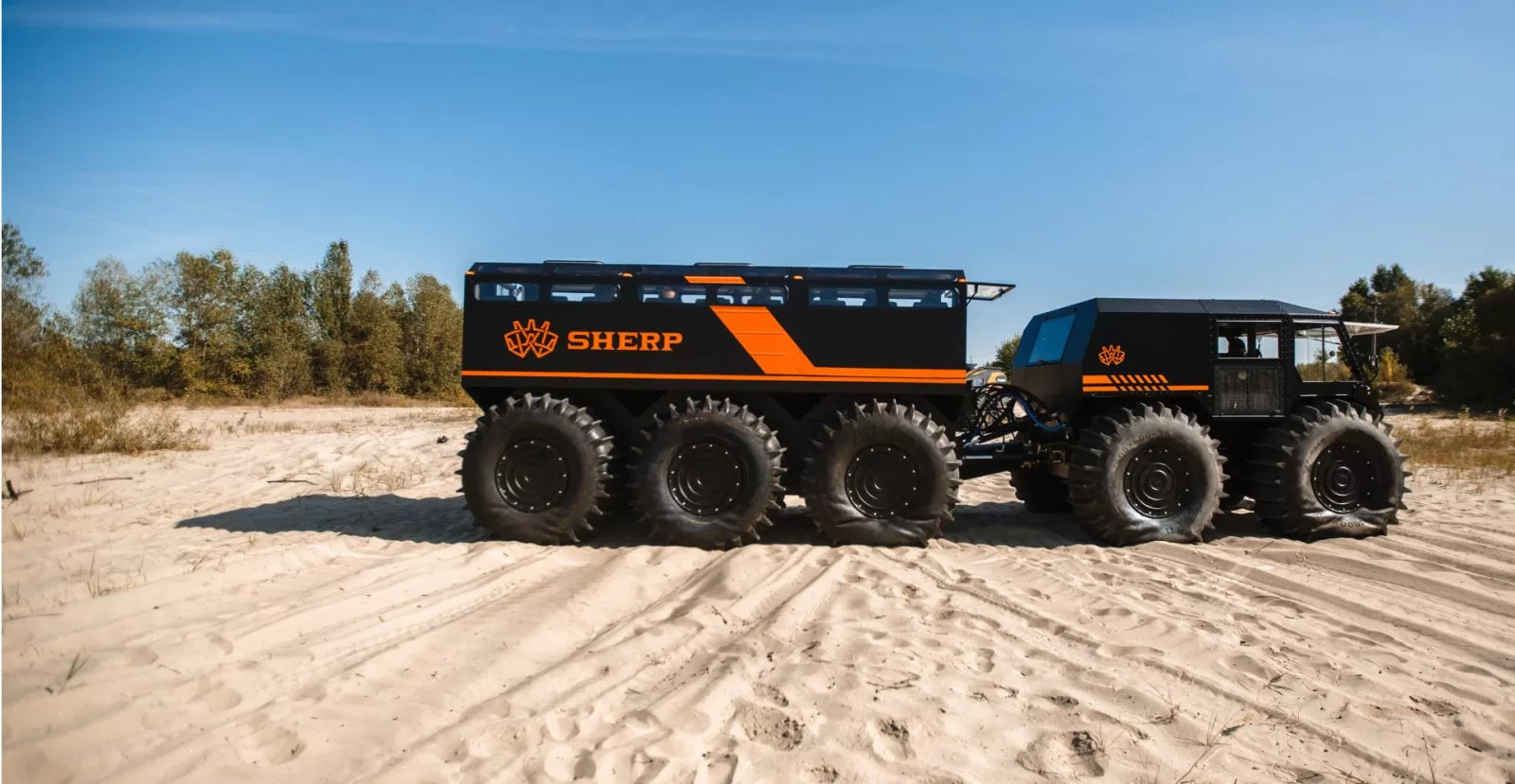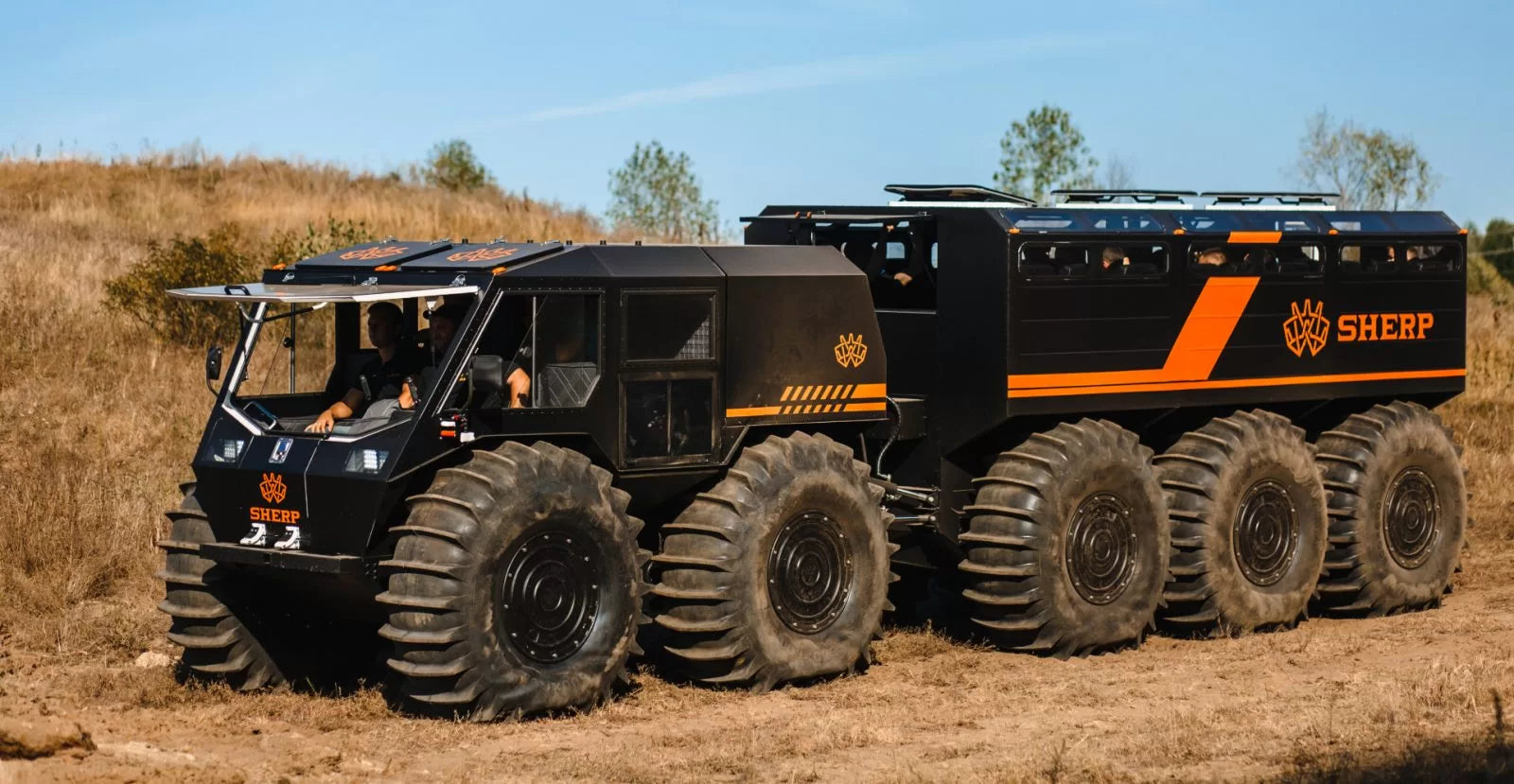 SHERP The Ark is the ultimate solution for navigating the world's toughest terrains and reaching remote, hard-to-access locations. Designed for exceptional off-road capabilities, the Ark revolutionizes transport over obstacles, whether it's extreme gradients, rugged landscapes, or multi-level barriers. Equipped with a 3-axis articulated steering system and an advanced torque-distribution all-wheel drive, this vehicle ensures unmatched mobility on any terrain. With a loading capacity of 3,400 kg (7,500 lb) and the ability to transport up to 22 passengers, it is as versatile as it is powerful. This makes the Ark 3400 an ideal choice for rescue missions, scientific explorations, and heavy-duty operations.